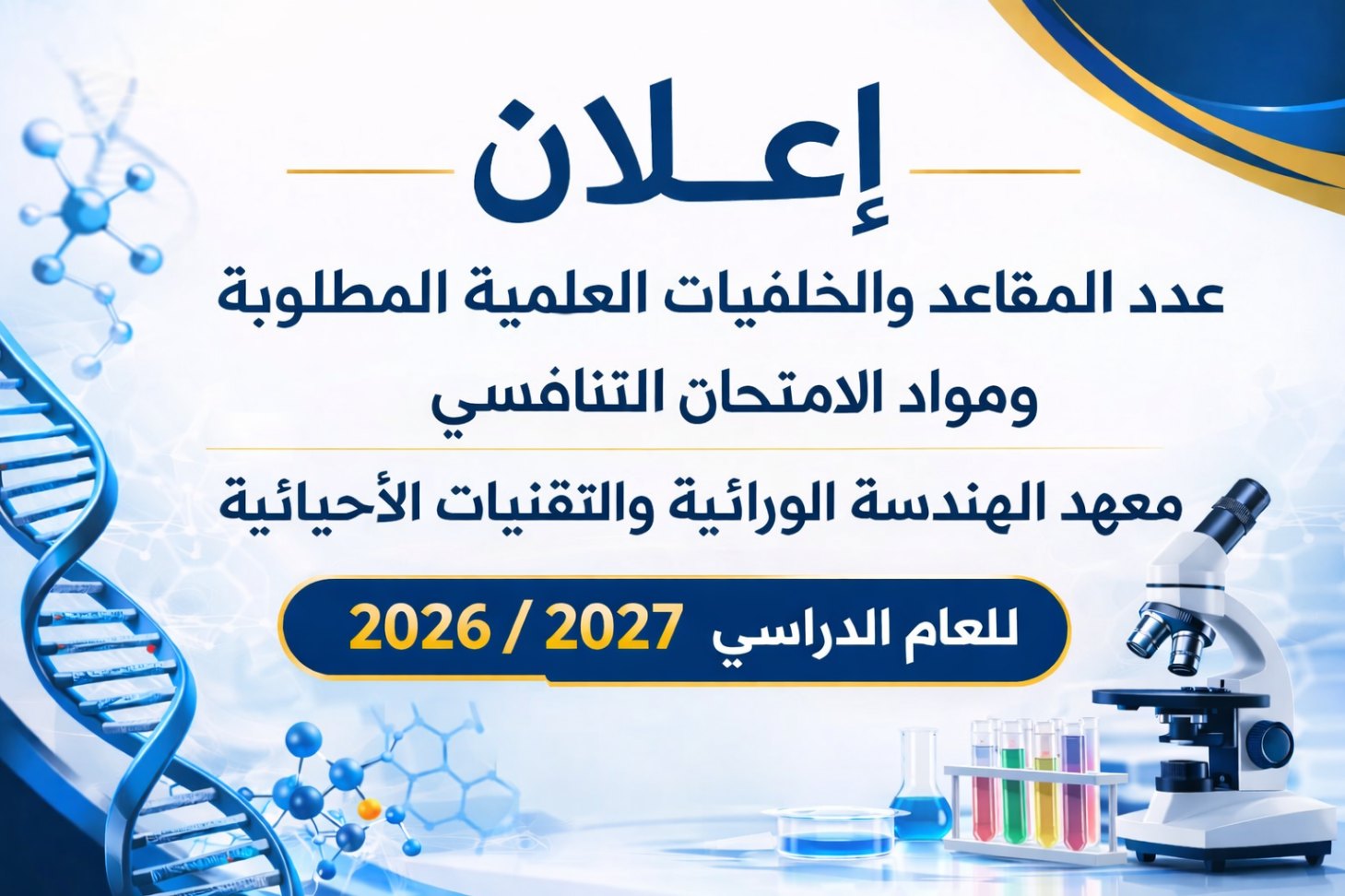إعلان التقديم للدراسات العليا في معهد الهندسة الوراثية والتقنيات الأحيائية للعام الدراسي 2026–2027